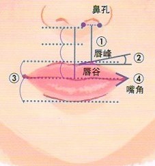3. 上唇厚度約佔鼻柱下緣至上下唇交界的1/3,下唇厚度約佔上下唇交界至下巴邊緣的1/4。